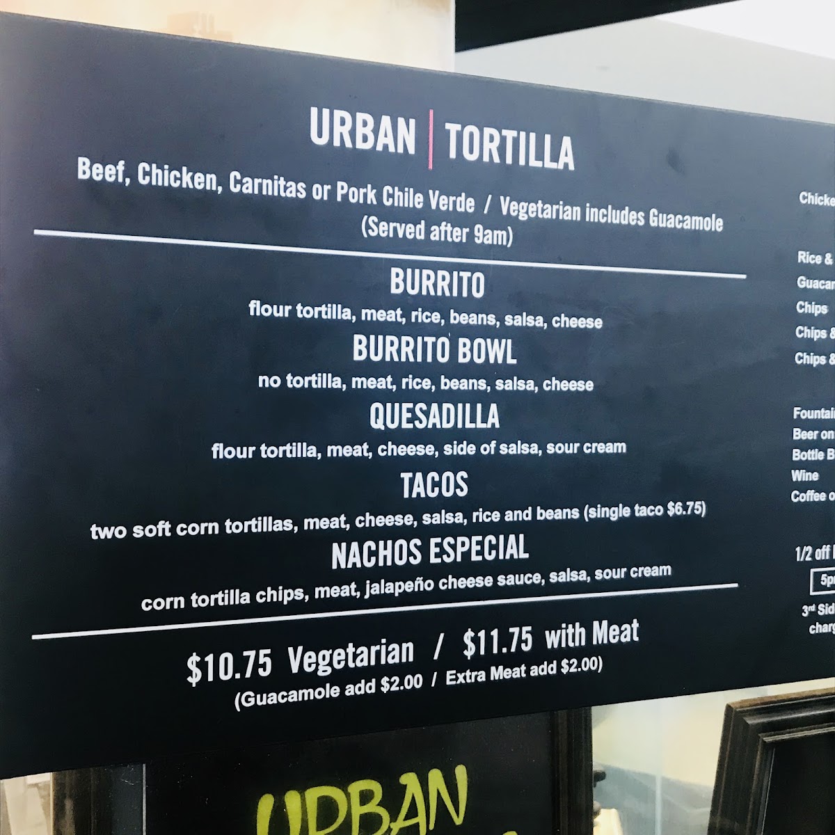 Urban Tortilla Menu